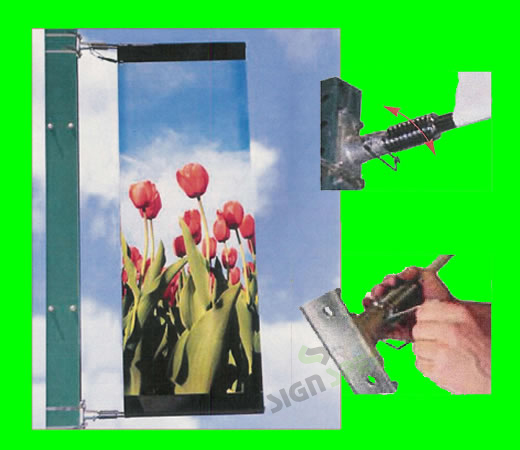Springloaded banner arms allow the system and the graphic to better withstand gusty weather - winds 18 - 24 mph (Beaufort Scale 5)