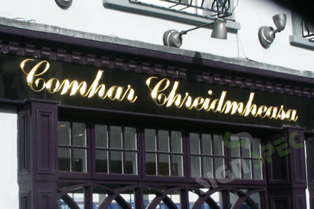 Gilded Prismatic raised lettering mounted on High Gloss Composite Aluminium background
