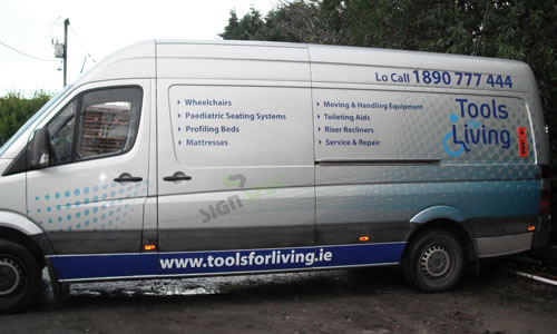 Silver Mercedes Sprinter with Partial Wrap and SAV graphics & text.
