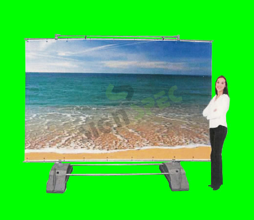 Single or Double sided banner system with telescopic pole for adjustable height.